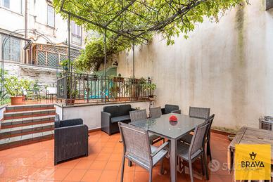 Il vero cuore di questa casa, però, è lo splendido spazio esterno: dal soggiorno si apre infatti un accesso privilegiato su un incantevole giardino di circa 108 mq, un'oasi privata in pieno centro, perfetta per cene all'aperto, momenti di relax o per chi desidera uno spazio verde da vivere tutto l'anno. A questo si aggiunge una terrazza di circa 30 mq, ideale per creare una zona lounge o un angolo dedicato al sole e alla quiete.