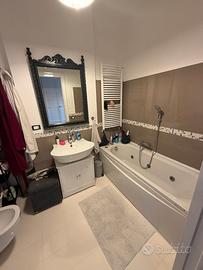 L'appartamento dispone di rifiniture e materiali di pregio di cui : pavimentazione in parquet, sanitari sospesi, vasca idromassaggio, scalda salviette, termosifoni a colonna, lampade di emergenza, rivelatore di fuga di gas, n. 3 pompe di calore, allarme, cronotermostato per riscaldamenti, porte laccate bianche, infissi in alluminio scorrevoli con vetri camera.