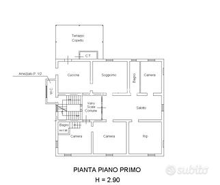 INTERNO: Appartamento molto spazioso composto da: ingresso, soggiorno, cucina abitabile, disimpegno notte, 4 camere da letto, 2 bagni e lavanderia.