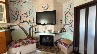 La cucina, il vero cuore pulsante della casa, è strettamente collegata al soggiorno e al terrazzo. Qui, potrete lasciarvi ispirare dalla bellezza e dalla funzionalità di un ambiente dotato di camino, perfetto per riscaldare le vostre serate invernali con un'atmosfera accogliente e intima.