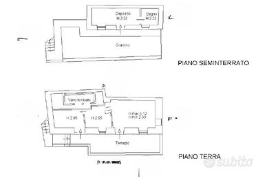 * Piano seminterrato: vano deposito con bagno e accesso diretto al giardino attiguo.