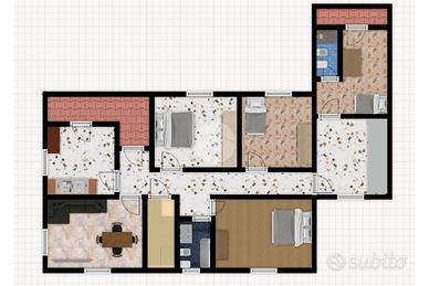Un comodo corridoio ci accompagna nella zona notte composta da cinque stanze, da destinare a camere, studio o spazi hobby.