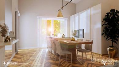 Ingresso su soggiorno e cucina living di ampia metratura, disimpegno con bagno finestrato, sanitari e box doccia.