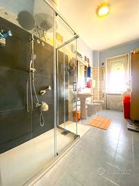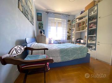 L'appartamento che proponiamo in vendita si trova al quarto piano servito da ascensore e gode di un'ottima esposizione est-ovest, che garantisce luminosità naturale durante tutto l'arco della giornata. Varcando la porta d'ingresso si viene accolti da un ampio salone doppio, impreziosito da un elegante pavimento in marmo dalle leggere venature grigie. L'ambiente, luminoso e arioso grazie all'esposizione a ovest, offre accesso diretto al balcone e presenta la possibilità di ricavare una ulteriore stanza o uno studio, adattandosi facilmente a diverse esigenze abitative. La cucina è abitabile e ben illuminata dalla luce del mattino, creando uno spazio funzionale e accogliente. La zona notte si compone di tre camere da letto con pavimentazione in legno, che conferisce calore e comfort agli ambienti. Il bagno è dotato di una generosa doccia filo pavimento, moderna e pratica. Gli infissi sono nuovi, in PVC bianco con doppio vetro, garanzia di isolamento termico e acustico. Completano la proprietà un box auto e una cantina pertinenziale.