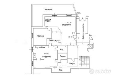 Questa si presenta come un bilocale accessorio provvisto di un proprio salone con angolo cottura ornato dal camino, uno stanzino e un secondo bagno,l'ingresso secondario e indipendente è nel salone orientato a nord e distinguibile in planimetria.