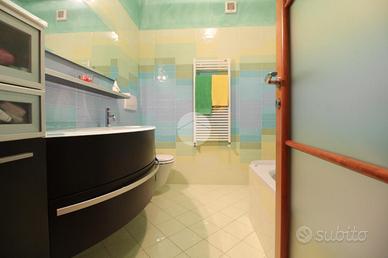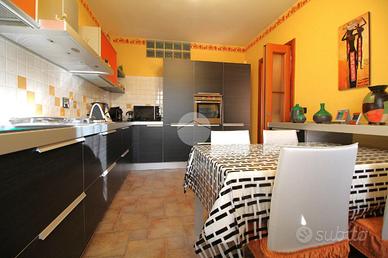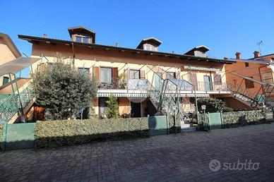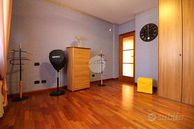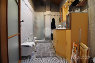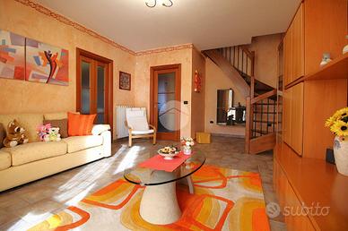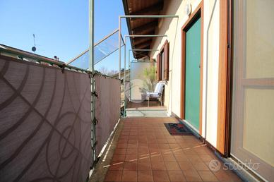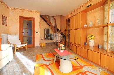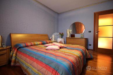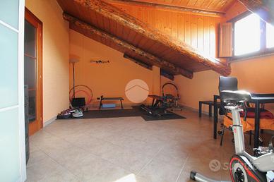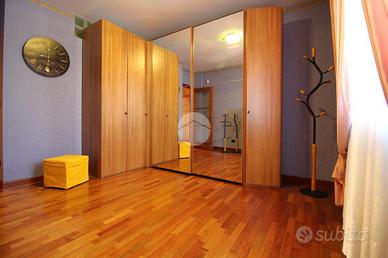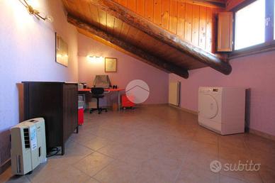 In una via chiusa e riservata, appartamento di generosa dimensione disposto su due livelli in contesto di poche famiglie. La scala esclusiva permette di raggiungere l'accesso all'abitazione. Il portoncino blindato apre sul soggiorno reso luminoso dalla portafinestra che conduce al balcone. La stanza è di ampia metratura ed è possibile arredarla con divano e parete soggiorno. La cucina abitabile presenta una comoda parete cottura ad angolo e permette di inserire un tavolo da pranzo. Il disimpegno conduce alle due camere matrimoniali, di metratura generosa e quindi arredabili a proprio piacimento. Il bagno è dotato di vasca e sanitari con vaschetta incassata . Dalla scala interna in legno si può raggiungere il piano superiore interamente rifinito, in cui sono presenti due locali dotati di abbaini. Il locale lavanderia è accessoriato con sanitari e impianto di carico e scarico per la lavatrice. Il sottotetto è inoltre caratterizzato dal soffitto in legno a vista. Il riscaldamento è autonomo e permette di gestire in autonomia i consumi; Gli infissi sono in legno con doppio vetro e zanzariere; le gelosie della zona giorno sono realizzate in alluminio. E' inoltre presente l'impianto di antifurto. Completano la soluzione i due box auto affiancati, completamente rifiniti e pavimentati.