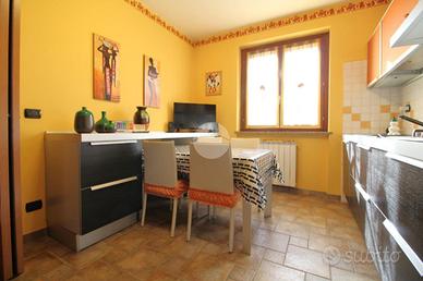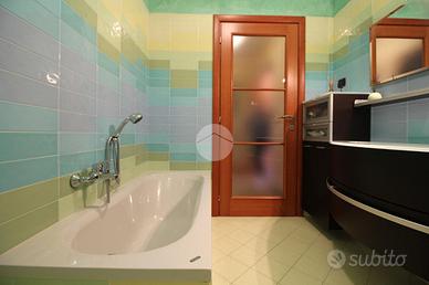 In una via chiusa e riservata, appartamento di generosa dimensione disposto su due livelli in contesto di poche famiglie e completo di due box auto. La scala esclusiva permette di raggiungere l'accesso all'abitazione. Il portoncino blindato apre sul soggiorno reso luminoso dalla portafinestra che conduce al balcone. La stanza è di ampia metratura ed è possibile arredarla con divano e parete soggiorno. La cucina abitabile presenta una comoda parete cottura ad angolo e permette di inserire un tavolo da pranzo. Il disimpegno conduce alle due camere matrimoniali, di metratura generosa e quindi arredabili a proprio piacimento. Il bagno è dotato di vasca e sanitari con vaschetta incassata . Dalla scala interna in legno si può raggiungere il piano superiore interamente rifinito, in cui sono presenti due locali dotati di abbaini. Il locale lavanderia è accessoriato con sanitari e impianto di carico e scarico per la lavatrice. Il sottotetto è inoltre caratterizzato dal soffitto in legno a vista. Il riscaldamento è autonomo e permette di gestire in autonomia i consumi; Gli infissi sono in legno con doppio vetro e zanzariere; le gelosie della zona giorno sono realizzate in alluminio. E' inoltre presente l'impianto di antifurto. Completano la soluzione i due box auto affiancati, completamente rifiniti e pavimentati e due cantine.