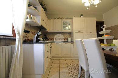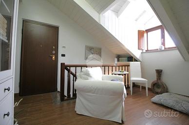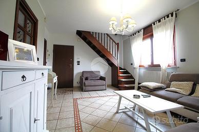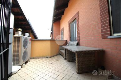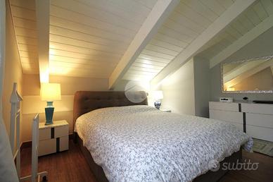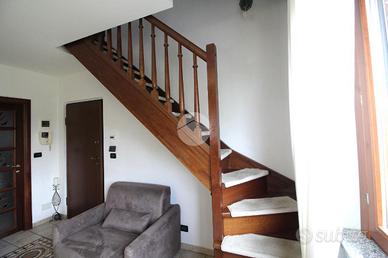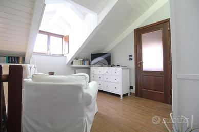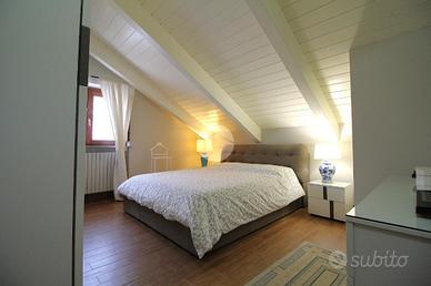 In zona residenziale, comoda a tutti i servizi ed ai supermercati, appartamento su due livelli con riscaldamento autonomo. Il portoncino blindato apre verso il soggiorno di dimensione generosa che è illuminato da un'ampia finestra; la porta scorrevole separa la cucina abitabile con rivestimento su tutte le pareti. Dalla cucina è possibile accedere ad un locale caratterizzato dal tetto a vista che può essere sfruttato come lavanderia, ed esso affaccia direttamente sul terrazzo. Dal disimpegno è possibile raggiungere il bagno accessoriato di doccia e la camera da letto matrimoniale, ben illuminata dalla finestra che affaccia sul terrazzo. La scala interna realizzata in legno conduce al piano superiore. Il piano è accessibile anche dalla scala condominiale in quanto è dotato del proprio portoncino di accesso blindato. Il tetto, in legno bianco, rende luminoso l'ambiente e lo caratterizza. Il piano è organizzato con tre locali spaziosi ed una lavanderia. Al piano interrato è presente l'autorimessa di dimensione generosa e due cantine di pertinenza. Nel cortile condominiale è presente inoltre il posto auto privato. La palazzina in cui è collocato l'alloggio, costruita nel 2005, è di sole otto famiglie ed esternamente è rifinita in paramano, non richiedendo interventi di ristrutturazione. L'appartamento è stato rifinito con materiali extra capitolato e le porte sono realizzate in legno ed inserti in vetro di Murano. L'appartamento è inoltre accessoriato di antifurto, zanzariere, tapparelle motorizzate e quattro condizionatori con funzione inverter e unica unità esterna; La caldaia che alimenta l'impianto di riscaldamento è a condensazione ed è stata recentemente sostituita, per cui le spese di riscaldamento risultano contenute. -------------------------------------- Vuoi accedere ad un mutuo? Ci pensiamo noi! Ti offriamo una consulenza gratuita con il nostro esperto, il quale ti indicherà verso le condizioni più vantaggiose di mercato. Richiedi il tuo appu