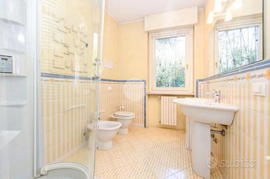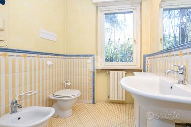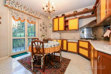Al piano principale, l'ingresso conduce a un ampio e luminoso soggiorno, ideale per accogliere ospiti o vivere quotidianamente gli ambienti con comodità. La cucina abitabile, con accesso diretto al magnifico giardino privato, rappresenta uno dei veri punti di forza della casa. Completano il piano due bagni-- uno di servizio e uno adibito a lavanderia -- oltre a una stanza aggiuntiva, versatile e perfetta come studio, camera di servizio o locale hobby.
