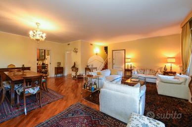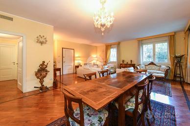 In una delle zone più prestigiose della città proponiamo in vendita un elegante appartamento di alto livello, caratterizzato da ampi spazi interni ed esterni e da una disposizione funzionale che coniuga comfort, privacy e ricercatezza. La proprietà si sviluppa su una superficie commerciale di 330 mq, composta da 240 mq di appartamento, un giardino esclusivo di circa 900 mq con alberi secolari e una taverna al piano interrato di 50 mq. L'abitazione è distribuita su due livelli.