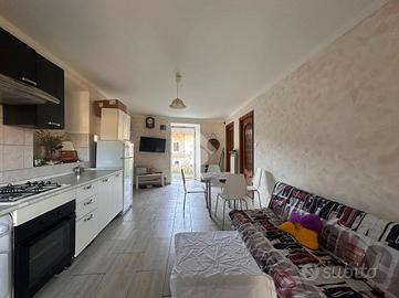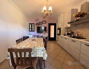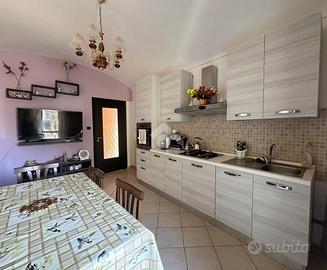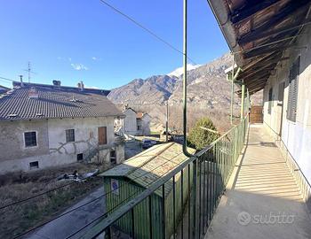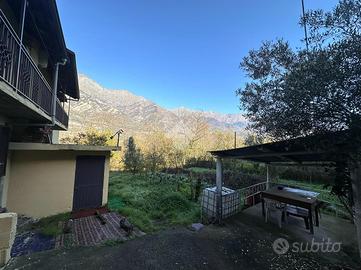 L'abitazione è situata in una borgata di Bussoleno, a meno di un chilometro dal centro abitato. La casa è composta da due appartamenti disposti su due livelli, collegati da scala esterna. Entrambi gli appartamenti sono dotati di ingresso indipendente. Al pian terreno si ha il primo alloggio, dove dall'entrata si accede al bagno finestrato dotato di doccia, adiacente troviamo la camera matrimoniale e un'open space con cucina e sala da pranzo con affaccio sul giardino di proprietà completamente recintato. Al piano primo è presente un disimpegno che divide la zona giorno composto da un soggiorno di generosa metratura con annesso un balcone che collega anche alla cucina abitabile. La zona notte è composta da due camere da letto di cui una matrimoniale e un bagno finestrato con doccia, dotato di attacchi per la lavatrice. Nel piano sotterraneo è presente una cantina e una stalla. L'impianto di riscaldamento è autonomo ed è gestito da un'unica caldaia a pellet. Il primo piano e stato ristrutturato nel 2011 mentre il piano terra gode di ristrutturazione interna più recente ultimata nel 2020. La struttura è in pietra con muri perimetrali portanti, questo dà la possibilità di poter spostare i muri interni dei vari vani. Esternamente c'è un box auto singolo. Completa la proprietà un fienile e due magazzini.