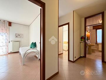 COSA SAPERE SULLA CASA Cucina - Soggiorno - Sala da Pranzo - Due bagni - Due camere - Due Terrazze - Garage doppio PARTICOLARITÀ E DESCRIZIONE Questo splendido appartamento situato al primo piano senza ascensore di una curata palazzina del 1985 rappresenta la soluzione ideale per chi cerca spazi ampi, razionali e una luminosità straordinaria in ogni ambiente. L'ingresso conduce a una zona giorno generosa e ben organizzata che comprende un accogliente soggiorno e una sala da pranzo distinta, oltre a una cucina abitabile separata e funzionale. La zona notte si compone di due camere da letto matrimoniali e due bagni completi, uno dotato di vasca e il secondo con box doccia. Un elemento distintivo di questa proprietà è l'eccezionale sfogo esterno, poiché ogni singola stanza dell'abitazione gode di un accesso diretto ai terrazzi abitabili che circondano l'appartamento, permettendo di vivere quotidianamente un rapporto privilegiato con la luce naturale e l'aria aperta. La proprietà è completata da un garage doppio. CONTESTO ED UBICAZIONE Ricordiamo che il comune di Caldiero dispone di tutti i servizi di cui un cittadino necessita, come supermercati, farmacie e banche. Inoltre è ben collegato dai mezzi pubblici, comodo alla tangenziale e sulla via principale possiamo trovare bar e negozi di varie attività.