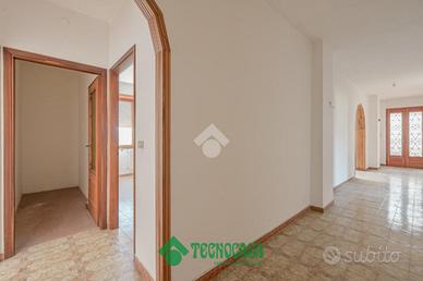 L'ingresso si apre su un corridoio centrale che distribuisce in modo ordinato tutti gli ambienti della casa. Gli spazi interni sono ampi e ben proporzionati: il doppio soggiorno, particolarmente luminoso, ha accesso diretto al terrazzo; la cucina è abitabile e separata; la zona notte è composta da tre camere da letto. Completa il piano un bagno finestrato e ulteriori due terrazzi che donano sfogo esterno e luminosità agli ambienti.