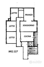L'immobile offre una spaziosa cucina abitabile con balcone, doppio salone, studio con balcone, sei camere da letto (tre matrimoniali), due bagni e doppio garage al piano interrato. I bagni sono stati rinnovati negli anni 2000 ed è presente l'aria condizionata.