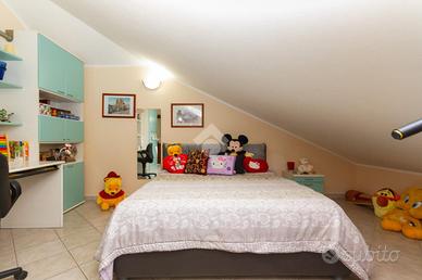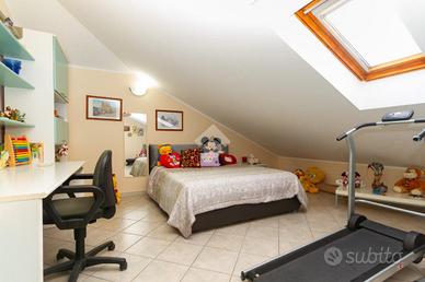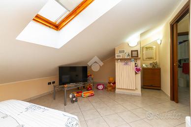 Nel comune di Caselle Torinese, proponiamo in vendita un ampio alloggio bilivello di 120 mq, situato all'ultimo piano di un edificio con ascensore. La proprietà, costruita nel 2005, offre una disposizione funzionale. L'ingresso si apre sul soggiorno servito da un caminetto a legna e da un balcone con affaccio sul verde condominiale; anche la cucina è servita da balcone con vista panoramica. Le due camere al piano offrono comodità, servite da un altro balcone con vista aperta sul fronte. Tutti i balconi sono dotati di tende estive ed invernali. La tripla esposizione garantisce luminosità in ogni ambiente. Completa il piano il bagno con vasca e una zona lavanderia, che assicurano comfort e praticità. Dalla scala interna si accede al secondo piano abitativo, servito da due camere e un altro bagno con box doccia. Completano la proprietà un box auto, un posto auto esterno e una cantina, offrendo soluzioni di parcheggio e spazio di archiviazione. L'immobile è dotato di aria condizionata, ideale per il comfort durante i mesi estivi. Questa recente costruzione rappresenta un'opportunità per chi cerca una residenza spaziosa e ben collegata nel cuore di Caselle Torinese.