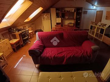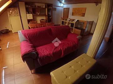 Proponiamo in vendita un ampio immobile di 150 mq ca., ideale per chi cerca spazio e funzionalità.questa soluzione si sviluppa su due livelli, offrendo una distribuzione degli ambienti che garantisce comfort e privacy. Il primo piano è composto da: ingresso n soggiorno, cucina abitabile con camino, cucinino e servizio, due camere e bagno.Mentre il secondo piano mansardato, è composto da:ampia zona giorno, due camere, cucinino e servizio. Inoltre al piano seminterrato troviamo il box auto.
