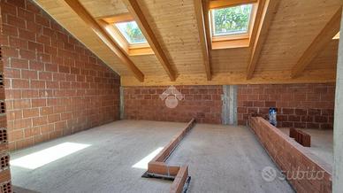 NUOVO APPARTAMENTO BILIVELLO CON TERRAZZO - CONSEGNA OTTOBRE 2026 L'appartamento fa parte di un moderno contesto residenziale composto da sei unità abitative in fase di costruzione progettato con massima attenzione all'efficienza energetica in posizione esclusiva e soleggiata. L'alloggio ha una superficie complessiva di circa 170 mq. Al primo piano si trova il soggiorno con affaccio sulla terrazza, una cucina e una camera da letto ed un bagno. Una scala interna conduce al piano sottotetto, luminoso e con altezze generose, dove è possibile realizzare fino a tre camere da letto e un secondo servizio igienico. La distribuzione interna degli spazi può essere personalizzata in base alle esigenze dell'acquirente, così come la scelta delle finiture per completare l'appartamento che sono inclusi nel prezzo. Ogni alloggio sarà dotato di impianto fotovoltaico e riscaldamento autonomo con pompa di calore per garantire comfort abitativo, aria salubre e un buon risparmio energetico. È possibile acquistare separatamente un box auto singolo al piano interrato al prezzo di € 20.000. Sulla nuova costruzione è inoltre prevista la detrazione fiscale del 50% sul costo di costruzione dell'autorimessa. L'edificio sarà realizzato con cappotto termico in Neopor da 14 cm, isolante acustico e infissi con vetri isolanti a bassa emissione e soluzioni costruttive studiate per ridurre le dispersioni di calore. Si prevede sul tetto uno strato di lana di vetro superbac, microventilazione e barriera al vapore. Grazie all'utilizzo di materiali e impianti di ultima generazione, l'immobile raggiungerà la classe energetica A4, assicurando comfort interno, consumi ridotti e bassi costi di gestione, con un minore impatto ambientale. Il progetto è pensato per chi cerca una soluzione funzionale, efficiente e inserita in un contesto tranquillo e panoramico. Se doveste VENDERE o LOCARE un immobile potete rivolgetevi a Noi, possiamo offrire una valutazione gratuita e senza impegno, per soddisfare l