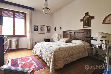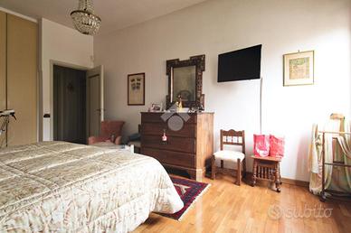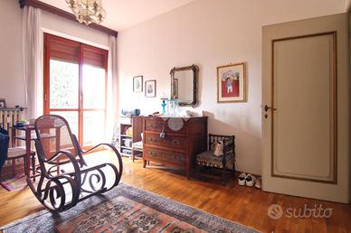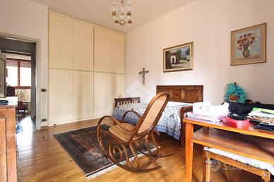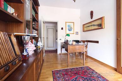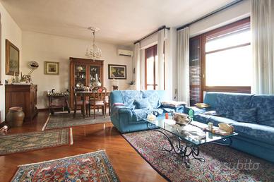 L'immobile misura circa 140 mq calpestabili e presenta un'ottima divisione degli ambienti. L'ampio ingresso conduce sulla sinistra al soggiorno doppio di quasi 35 mq, con accesso al balcone che affaccia sulla piazza, e sulla destra alla cucina abitabile dotata di terrazza tergale. Nella zona notte si trovano due camere da letto matrimoniali dotate di armadio a muro, un grande studio collegato al soggiorno tramite una porta a vetri scorrevole e utilizzabile come terza camera, due bagni entrambi finestrati e un comodo ripostiglio.