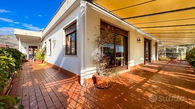 L'abitazione sviluppa 152 mq interni calpestabili, caratterizzati da ambienti ampi, luminosi e ben distribuiti. Il fulcro della casa è il salone doppio esposto a sud, impreziosito da grandi vetrate che regalano una vista mare senza ostacoli e accesso diretto al terrazzo panoramico di 117 mq, in parte coperto, ideale per vivere appieno gli spazi esterni in totale privacy.