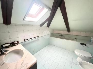 Una moderna scala, collocata al centro del salotto, conduce alla mansarda, altrettanto luminosa grazie alla presenza di numerosi velux. Questo livello ospita un'ampia zona principale di grande impatto, oltre a due ulteriori camerette e a un bagno con vasca.