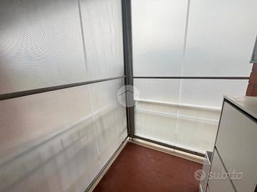 La zona giorno è ampia e ben distribuita, con accesso al terrazzo e a doppi balconi, e comprende un grande salotto separato dalla cucina. Al piano principale si trovano inoltre due camere da letto, entrambe dotate di balcone, e due bagni, uno con vasca e uno con box doccia, anch'essi con accesso ai balconi.