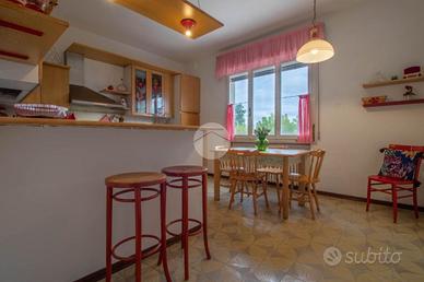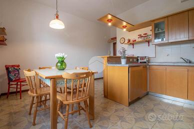 La zona giorno è composta da un'ampia cucina abitabile e da un comodo soggiorno con porta finestra che ci permette di accedere al balcone.