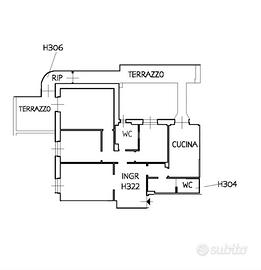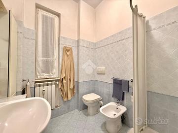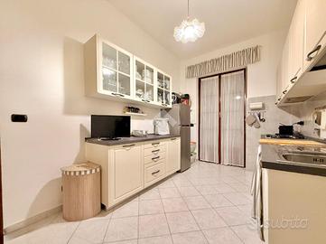 ampio ingresso alla genovese, 3 camere da letto, un primo bagno finestrato completo di sanitari e box doccia, ed un secondo bagno con aspirazione forzata completo di lavandino bidet e wc, cucina abitabile con porta finestra sul balcone, un secondo terrazzino abitabile e una dispensa.