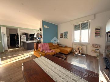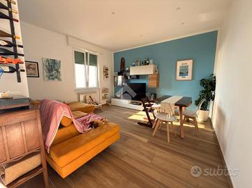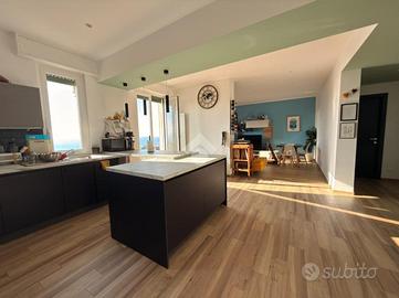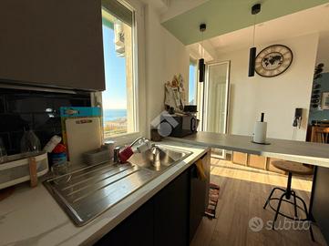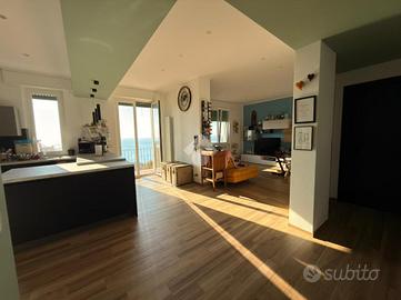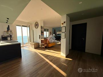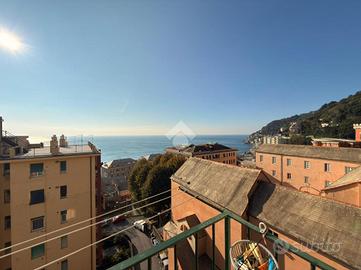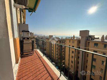 Voltri. Via Antonio Viacava. Proponiamo splendido appartamento di metri quadrati 125 posto al quinto piano con ascensore, tripla esposizione, composto da ingresso, ampia zona giorno con balcone, soggiorno grande, tre camere da letto, doppi servizi entrambi con finestra e dispensa. L'immobile, derivante dalla fusione di due appartamenti attigui, è stato recentemente e finemente ristrutturato nel suo complesso. Riscaldamento e condizionamento autonomo. Splendida vista mare. A duecento metri dalla passeggiata e dalla spiaggia.