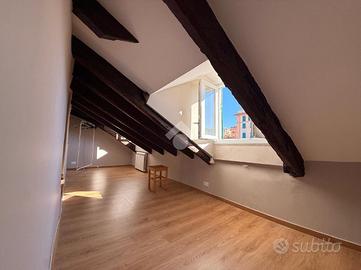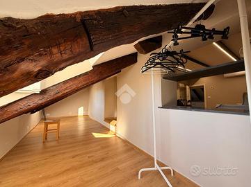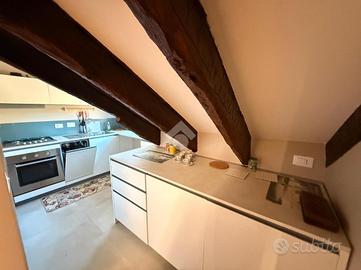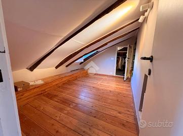 I suoi 100 mq mansardati sono impreziositi da splendide travi a vista che donano carattere e calore agli ambienti. L'appartamento si compone di: