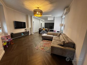 L'alloggio si presenta con ampio ingresso, zona giorno di 41 mq con soggiorno aperto sulla cucina, due camere da letto matrimoniali, una terza camera matrimoniale patronale con bagno personale e balcone, lavanderia cn finestra e secondo ampio bagno dotato di box doccia e doppio lavandino.