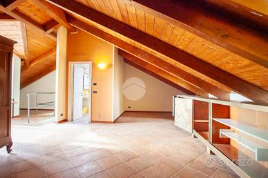 Al piano superiore mansardato, valorizzato dal tetto in legno, troviamo un ampio open space facilmente divisibile, con la possibilità di realizzare due o tre camere da letto oltre al bagno.