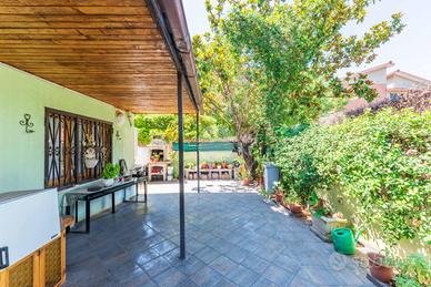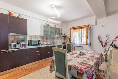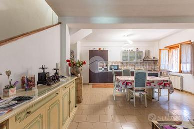 Piano terra: ampio soggiorno con camino e cucina a vista. Corte esterna pavimentata di 50 mq circa con con accesso pedonale indipendente.