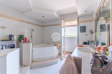 Piano secondo: ampio disimpegno, bagno, camera da letto con cabina armadio, camera matrimoniale con comoda cabina armadio e bagno padronale con vasca idromassaggio. Due balconi.