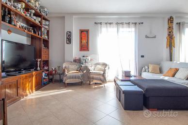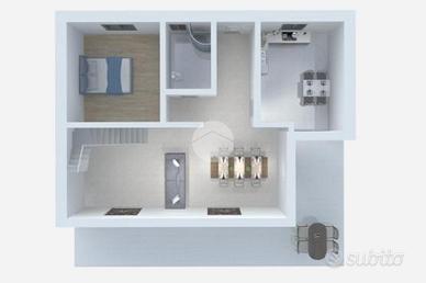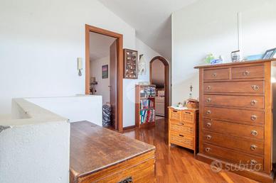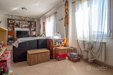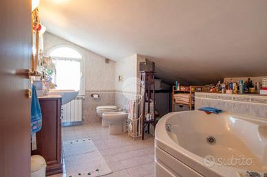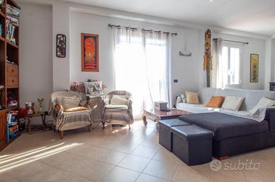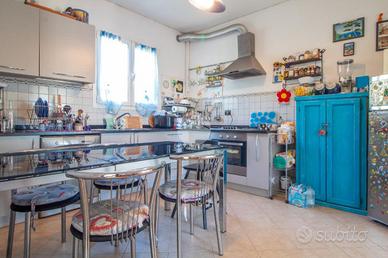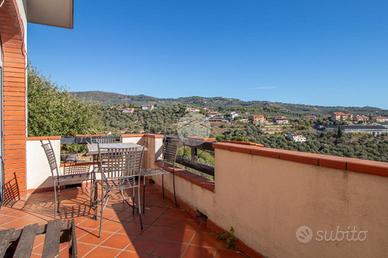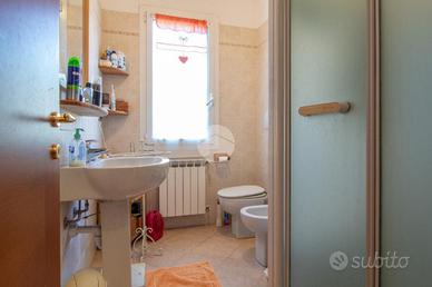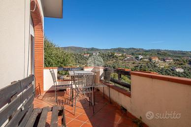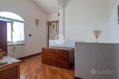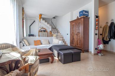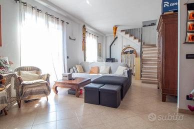 In contesto tranquillo e residenziale, proponiamo in vendita appartamento in villa disposto su due livelli, con giardino privato e terrazzo sulla zona living. L'abitazione si apre su un luminoso salotto con fuoriuscita sul terrazzo, ideale per pranzi all'aperto e momenti di relax. La cucina abitabile è comoda e funzionale, mentre la zona notte al piano principale comprende una camera matrimoniale e un bagno con finestra. Una scala interna in salotto conduce al piano superiore, composto dal disimpegno che conduce alle due camere da letto, entrambe luminose e al secondo bagno con finestra completo di vasca idromassaggio. Il terrazzo sulla zona living regala una piacevole vista aperta fino al mare, rendendo l'ambiente particolarmente arioso e rilassante. Il riscaldamento è autonomo con caldaia a gas e termosifoni, integrato da una stufa a pellet che garantisce comfort e risparmio energetico. Completano la proprietà il posto auto, spazi esterni vivibili e un'atmosfera di assoluta tranquillità, a breve distanza dai principali servizi.