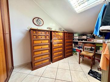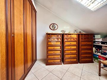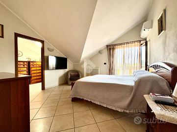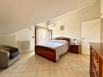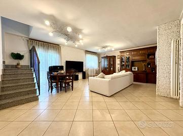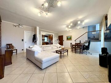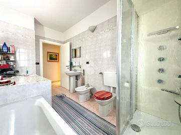 Scopri questo splendido appartamento situato al secondo piano di una palazzina elegante, costruita nel 2004, immersa in una tranquilla zona residenziale caratterizzata da sole ville e piccoli condomini. L'immobile è dotato di ascensore, rendendo l'accesso comodo e pratico per tutti. Il portoncino blindato si apre sull'ampio soggiorno illuminato da due porte finestre che conducono a un balcone di proprietà. Adicente al soggiorno vi è la cucina abitabile ideale per chi ama cucinare e intrattenere. La zona notte è accessibile tramite scala interna e comprende tre camere matrimoniali, due delle quali sono dotate di cabina armadio o lavanderia, offrendo così un'ottima soluzione per organizzare al meglio gli spazi. Inoltre, l'appartamento dispone di due bagni finestrati, uno con vasca e l'altro con doccia, garantendo comfort e funzionalità. Completano la proprietà una cantina al piano interrato e un box auto di ben 60 mq, perfetto per chi cerca spazio aggiuntivo. Gli infissi in doppio vetro assicurano un'ottima isolamento termico e acustico, mentre il riscaldamento autonomo e l'impianto di aria condizionata garantiscono un clima ideale in ogni stagione.