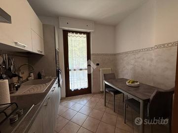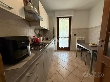 L'immobile è collocato al primo e ultimo piano con un ingresso living sul soggiorno e accesso al terrazzo. La cucina abitabile ha l'accesso al secondo balcone e al terrazzo.