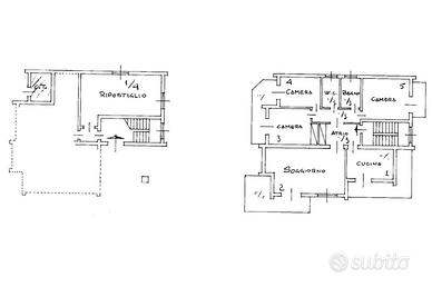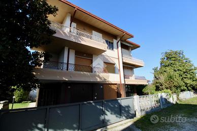 Da via Puccini accediamo ad una laterale che porta al cortile antistante la palazzina mediante un cancelletto pedonale ed un cancello scorrevole carrabile e dopo aver percorso alcuni metri ci troviamo di fronte all'entrata comune dei due appartamenti ed alla scala interna che porta ai piani primo e secondo.