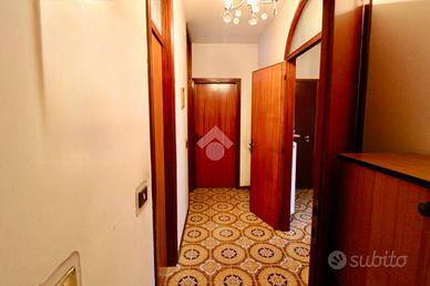 Dopo aver percorso le scale accediamo all'ingresso dell'appartamento tramite un portoncino ligneo, e, oltrepassandolo, al disbrigo che mette in relazione i vari ambienti della casa.