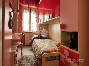 La soluzione si sviluppa su una superficie di circa 145mq, organizzati in cucina abitabile e soggiorno per la zona giorno, a cui seguono ben 4 camere, di cui 2 matrimoniali e due singole.