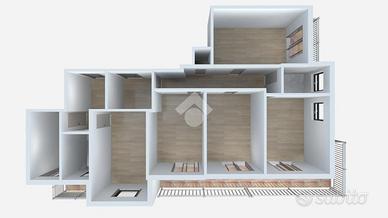 L'appartamento si compone di: ingresso in ampio disimpegno, luminoso soggiorno e sala da pranzo con accesso a un'ampia balconata con vista parziale sul mare, cucina abitabile con balcone, tre spaziose camere da letto, doppi servizi, comodo ripostiglio.