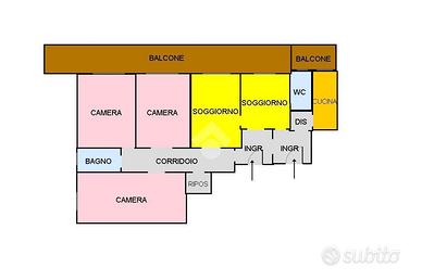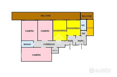 L'immobile è posto a un piano intermedio servito da ascensore e dispone di doppio ingresso, ideale anche per eventuali esigenze di divisione degli spazi.