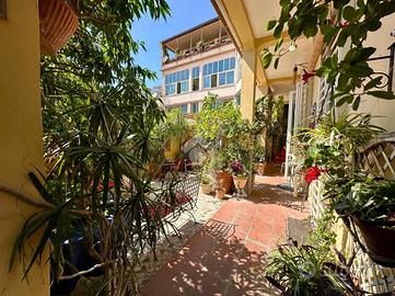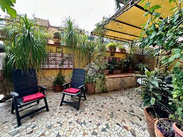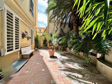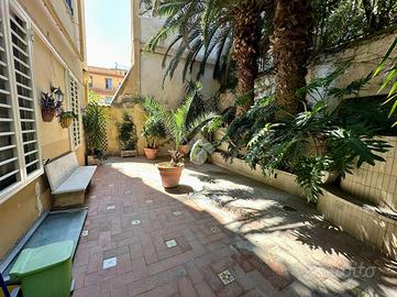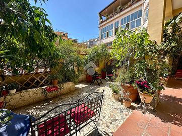 In un contesto unico ed originale a pochi passi da via Dei Mille, ed esattamente sulle Rampe Brancaccio al Viale Fornelli, poniamo in vendita un immobile in una villa stile liberty dell'inizio del novecento, esclusivo e prestigioso, di ampia quadratura e situato ad un piano giardino che con più di 200 mq, lo circonda completamente. Tutto l'appartamento esposto a sud, a ovest e a nord, affaccia sul giardino di proprietà esclusiva, dotato di palme, aiuole con alberi da frutta e un orticello e di una singolare atmosfera silenziosa, interrotta solo dal canto degli uccelli. Lo spazio esterno è anche in buona parte pavimentato. Due gazebo lo rendono comodamente vivibile. E' di grande utilità inoltre, un locale di appoggio per le attrezzature da giardinaggio e/o eventuali accessori utili all'organizzazione di pranzi e cene all'aperto. L'appartamento ha una posizione originale dovuta alla caratteristica formazione a terrazze della zona e risulta per tanto particolarmente arioso.