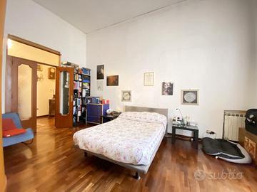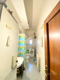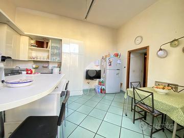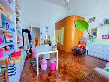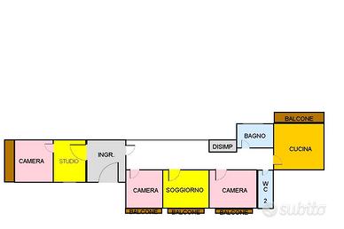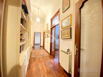 L'appartamento è internamente composto da un comodo ingresso, una camera-studio, una camera con balcone con esposizione molto soleggiata sulla strada principale, un lungo corridoio che disimpegna tutte le altre stanze, e precisamente le due camere matrimoniali, un ampio salotto e la cucina abitabile.