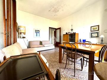 NUORO - In Via Veneto, in stabile di poche unità e distante pochi minuti a piedi dal centro, appartamento esavano di ampia metratura. Percorse delle scale comuni, in cui è stato recentemente installato un montascale, si raggiunge il piano terzo: varcata la soglia d'ingresso, si viene accolti da un lungo andito che collega tutti gli ambienti della casa. Una cucina abitabile è dotata di parete cottura mentre una luminosa zona pranzo è separata da un soggiorno tramite una parete scorrevole. Proseguendo lungo l'andito di ingresso, si trovano le tre camere da letto, tutte di buona metratura e un bagno finestrato con antibagno. Adiacente la porta d'ingresso è presente una locale deposito finestrato mentre, soprastante e per l'intera ampiezza dell'immobile, una terrazza calpestabile e panoramica.