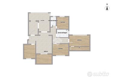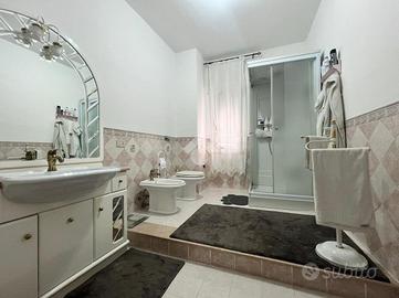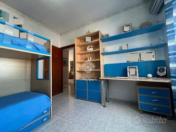 La zona notte presenta una camera da letto matrimoniale e tre camerette, inoltre sono presenti due bagni entrambi muniti di box doccia.