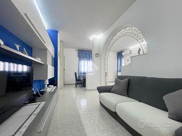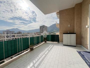 L'ingresso è direttamente su un disimpegno, dal quale si accede all'ampia zona giorno caratterizzata da comodo salone con balcone annesso ed ampia zona living cucina soggiorno.