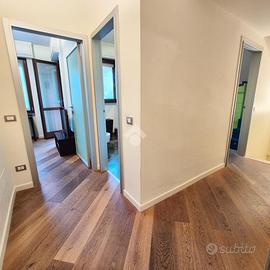 Le altre tre camere da letto sono tutte ben dimensionate. Sul piano è disponibile anche un secondo bagno con pavimentazione in cotto veneto verde alpi e rivestimento delle pareti in bisazza, attrezzato di box doccia Jacuzzi. Il piano e rivestito in parquet a listoni grandi in Rovere Spazzolato. L'appartamento è dotato di ogni comfort: aria condizionata, antifurto, tapparelle elettriche antisfondamento, zanzariere e tende da sole elettriche con sensori sole/vento/pioggia. I piani sono inoltre completamente cablati con rete Ethernet, antenne TV/satellitare e predisposizione per filodiffusione B&O (Bang & Olufsen). Gli infissi sono realizzati in legno di Abete, colore Noce, con vetro cam