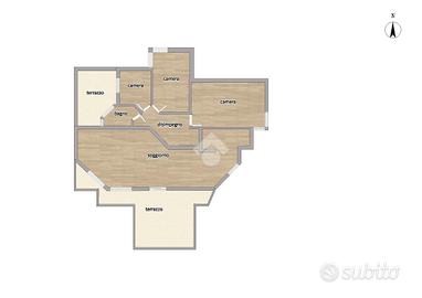 Salendo al piano superiore si accede al secondo appartamento, caratterizzato da una metratura generosa. Qui troviamo un ampio salone con affaccio su un grande terrazzo, perfetto per cene all'aperto e momenti di relax. Completano il piano un angolo cottura, tre camere matrimoniali - di cui una con accesso ad un ulteriore terrazzo panoramico - e un bagno.