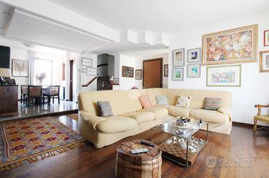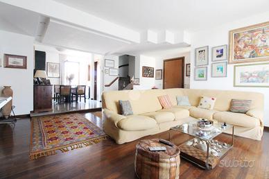 Sacrocuore - Via Ciliani In contesto residenziale ed esclusivo, proponiamo in vendita un appartamento posto al secondo e ultimo piano in costruzione Sabbi degli anni 90'. L'immobile si sviluppa su due livelli: ad accoglierci è l'ingresso direttamente nella zona living in open space con rifiniture di pregio e doppia esposizione; Ad arricchire la zona giorno sono i due terrazzi di cui uno con accesso dal salotto e l'altro con accesso dalla sala da pranzo, quest'ultima accessoriata sia di cucinotto che di ripostiglio. Il disimpegno ci conduce nella zona notte dove troviamo la camera da letto matrimoniale e la camerina, completano la zona i doppi servizi, di cui uno con vasca e uno con box doccia. A rendere accogliente e raffinato l'immobile è la pavimentazione in parquet e in marmo. E' proprio la scala a vista che ci conduce al piano mansarda, dove è stata creata una zona giorno confortevole fornita di cucina e forno, a rendere unico l'ambiente è il camino e l'accesso al terrazzo abitabile. A valorizzare la mansarda è la camera da letto con accesso anch'essa al terrazzo e il terzo servizio dell'immobile finestrato con vasca. Completa il piano mansardato una comoda soffitta con tre spazi attualmente utilizzati come studio, ripostiglio e zona lavanderia. Al piano seminterrato accessibile tramite ascensore è presente il garage doppio. L'immobile si presente in buone condizioni. Il riscaldamento è autonomo ed è presente l'aria condizionata. Per ricevere maggiori informazioni e/o fissare un appuntamento contattateci allo o scriveteci via e-mail a pocn0@tecnocasa.it