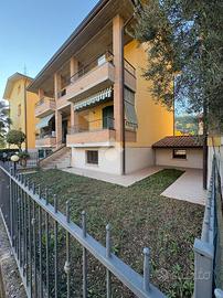 Completano la proprietà un piccolo giardino privato, una cantina, un garage doppio e uno singolo raggiungibili dal vano scala coperto, che assicurano comodità e spazio per i veicoli o per lo stoccaggio di oggetti della casa.